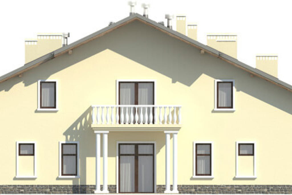 Bryła budynku należy do bardzo prostych. Nieskomplikowany w rzucie kształt został przykryty dachem dwuspadowym, dzięki czemu jego budowa będzie bardziej oszczędna. Mimo tego budynek jest bardzo ciekawy, dzięki zastosowaniu zadaszonego wejścia, dwóm balkonom wspartym kolumnami oraz licznym świetlikom w połaci dachu. Forma ta jest doskonałym przykładem na stworzenie budynku prostego, a zarazem bardzo atrakcyjnego.