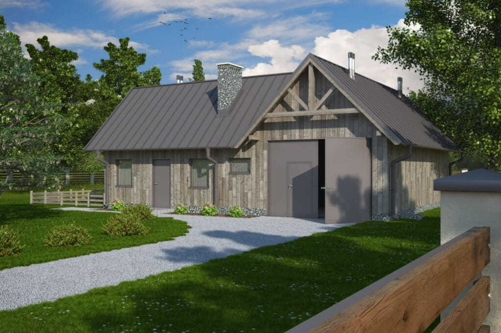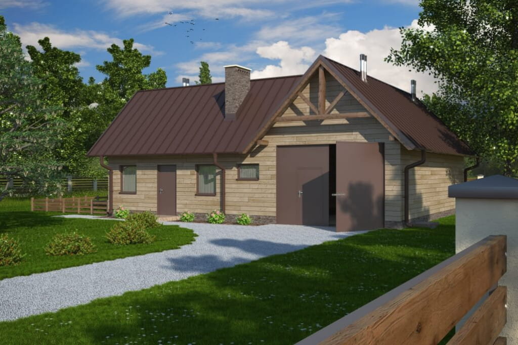Projekt budynku gospodarczego ZG-62. Budynek parterowy ze strychem częściowym oraz częściowym podpiwniczeniem. Drewniany budynek o zgrabnej architekturze do wykorzystania w celach gospodarczych.