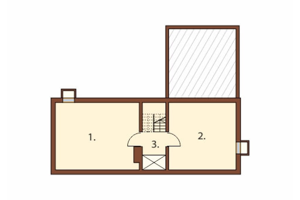 W piwnicy zaplanowano dwa przestronne pomieszczenia. Są one rozświetlone światłem naturalnym poprzez specjalną konstrukcję studzienki doświetlającej. Dzięki temu przestrzeń będzie przyjemniejsza i bardziej słoneczna. Można ją oczywiście dostosować do swoich potrzeb i składować tu dowolne przedmioty.