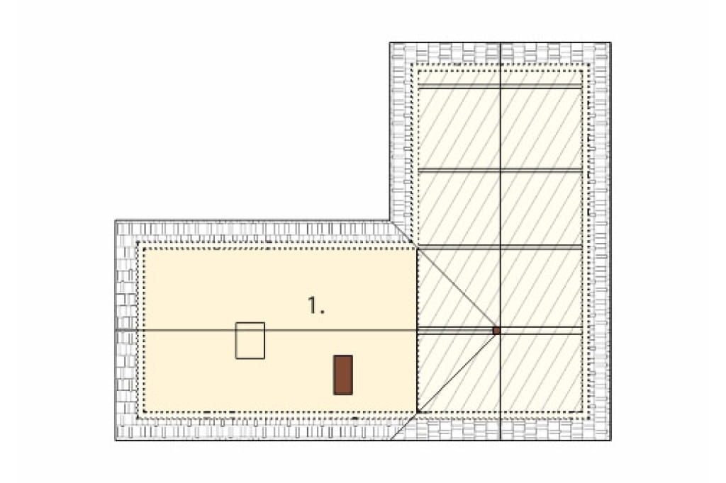 Na poddaszu zaplanowano strych. Powiększa on dodatkowo przestrzeń i można w nim składować rzeczy rzadziej używane lub takie, które nie mieszczą się w innych pomieszczeniach.