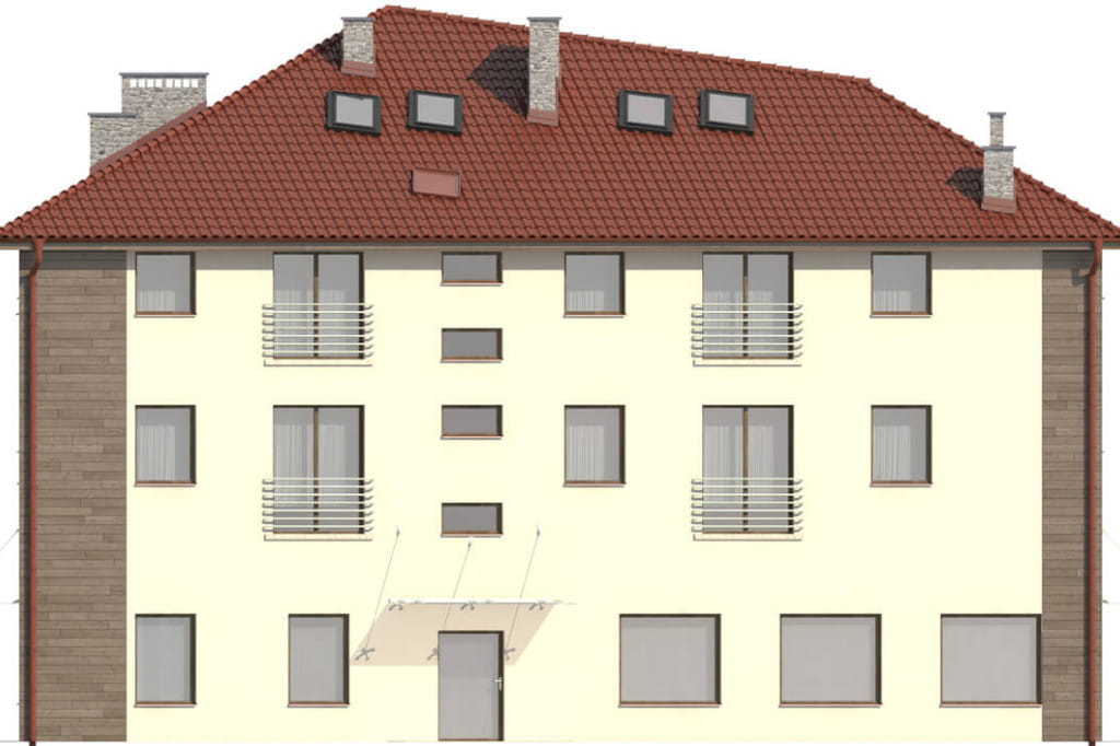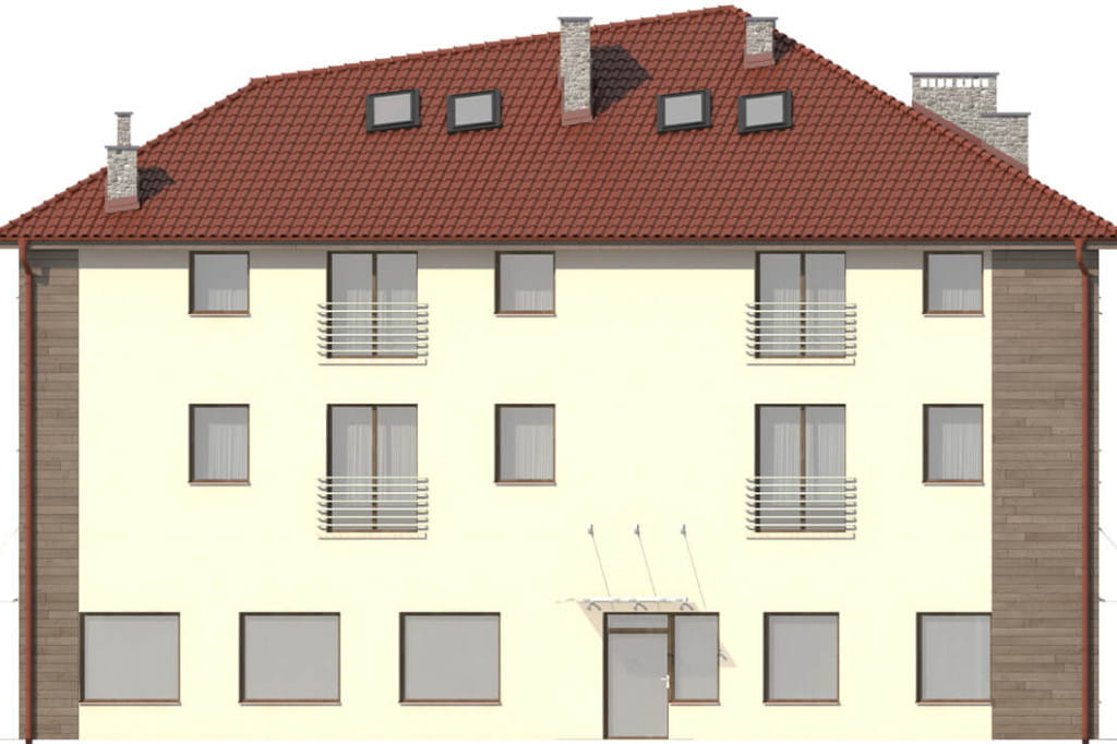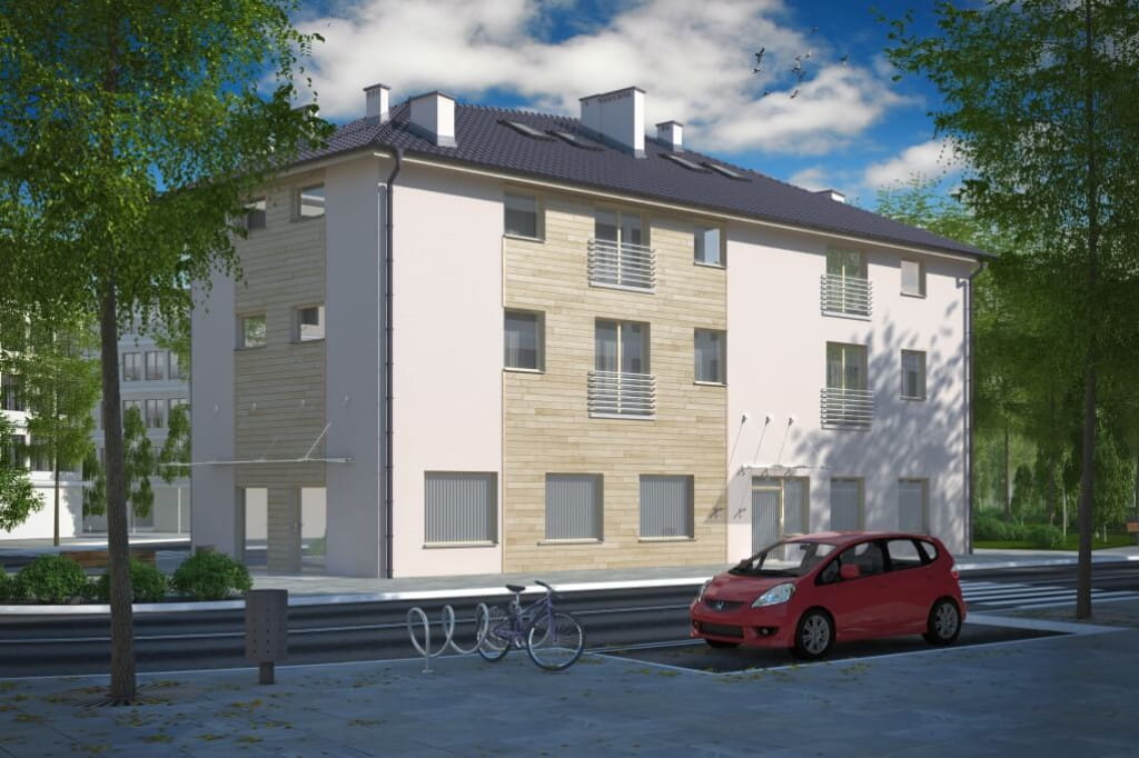 Dzięki zastosowaniu zwężenia w bryle, forma zdecydowanie wyróżnia się na tle innych. Mimo to jest dość minimalistyczna i stanowi doskonałą alternatywę dla tradycyjnych, często nieatrakcyjnych wizualnie bloków mieszkalnych. Budowa obiektu wielorodzinnego z funkcją usługową w parterze jest rozwiązaniem umożliwiającym zamieszkanie niekoniecznie na obrzeżach miasta. Dodatkowe urozmaicenie stanowi połać dachowa z lekkim skosem w stronę węższej części obiektu.