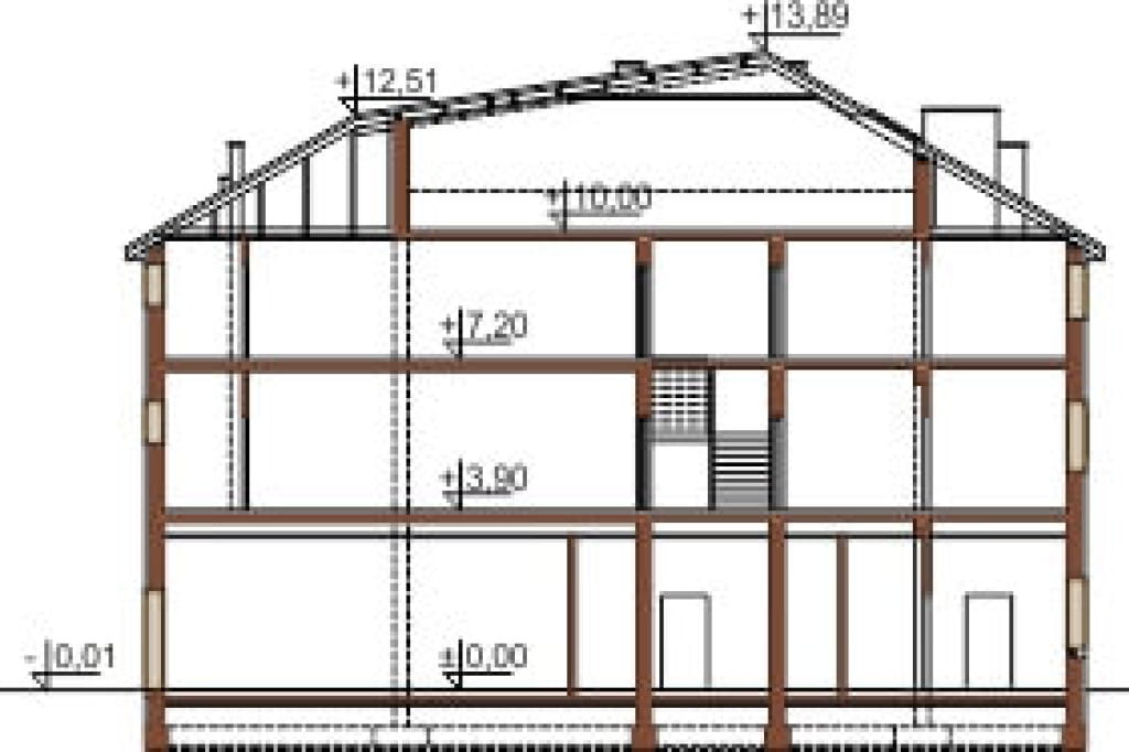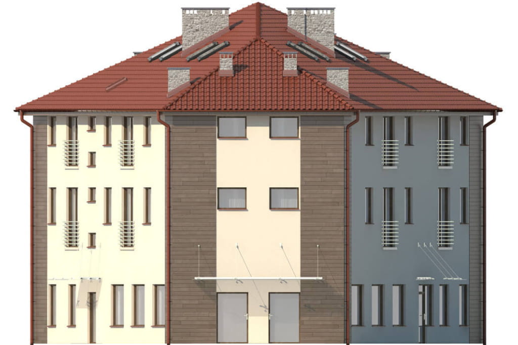Program: Parter: 2 lokale usługowe do adaptacji pod wynajem, gabinet fryzjerski, przychodnia dentystyczna z zapleczem sanitarno - socjalnym. Piętro: 4 mieszkania dwupokojowe II piętro: 2 mieszkania dwupokojowe, 2 mieszkania dwupoziomowe Poddasze: drugie poziomy z dwóch mieszkań z niższej kondygnacji.