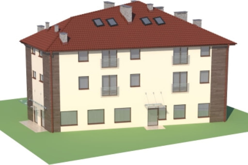 Projekt budynku usługowo-mieszkalnego, z lokalami usługowymi na wynajem, przychodnią dentystyczną, oraz mieszkaniami K-34, dwupiętrowy z poddaszem mieszkalnym bez podpiwniczenia i bez garażu.