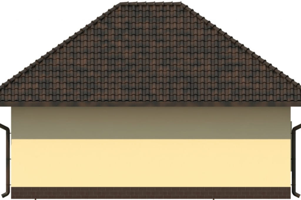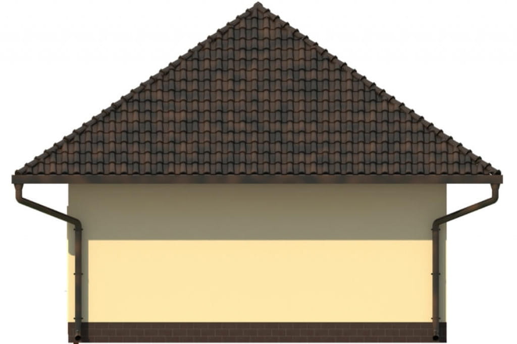 Zwarta bryła obiektu stanowi gwarancję szybkiej i niezbyt kosztownej budowy, a rezygnacja z przeszkleń na dwóch elewacjach znacznie ułatwi korzystne ulokowanie budynku na działce. Prosta elegancja garażu podkreślona jest przez czterospadowy, kopertowy dach.