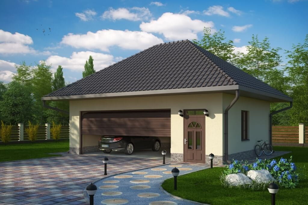 Projekt budynku gospodarczo - garażowego LZG-87. Budynek parterowy z poddaszem użytkowym (strychem), bez podpiwniczenia. Bardzo ładny projekt garażu wolnostojącego z dachem kopertowym. Oprócz funkcji garażowej posiada także pomieszczenia gospodarcze, co ucieszy rodziny, które poszukują miejsca na przechowywanie rowerków, hulajnóg i innych sprzętów sportowych swoich dzieci.