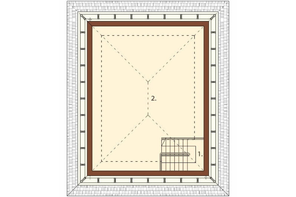 2. Strych 40,1 m2 / 54,4 m2 Przestronny strych można zaadaptować na kilka pomieszczeń służących przechowywaniu sprzętów związanych z majsterkowaniem czy drobnymi naprawami warsztatowymi.