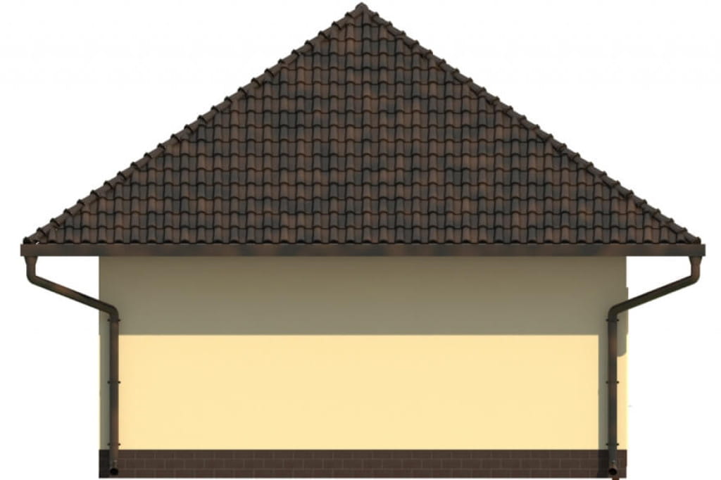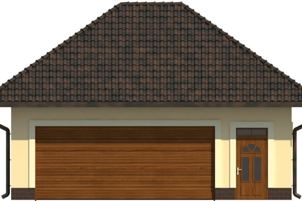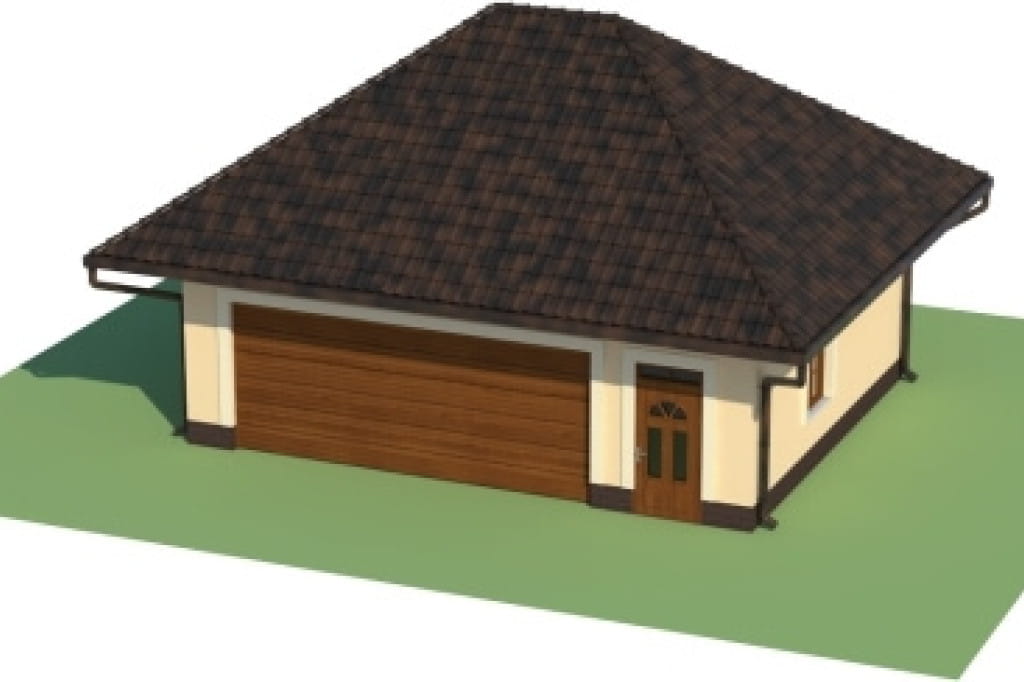 Zwarta bryła obiektu stanowi gwarancję szybkiej i niezbyt kosztownej budowy, a rezygnacja z przeszkleń na dwóch elewacjach znacznie ułatwi korzystne ulokowanie budynku na działce. Prosta elegancja garażu podkreślona jest przez czterospadowy, kopertowy dach.
