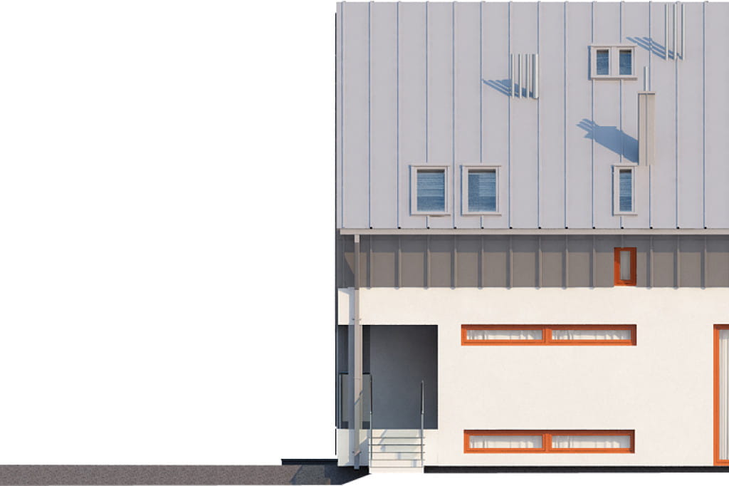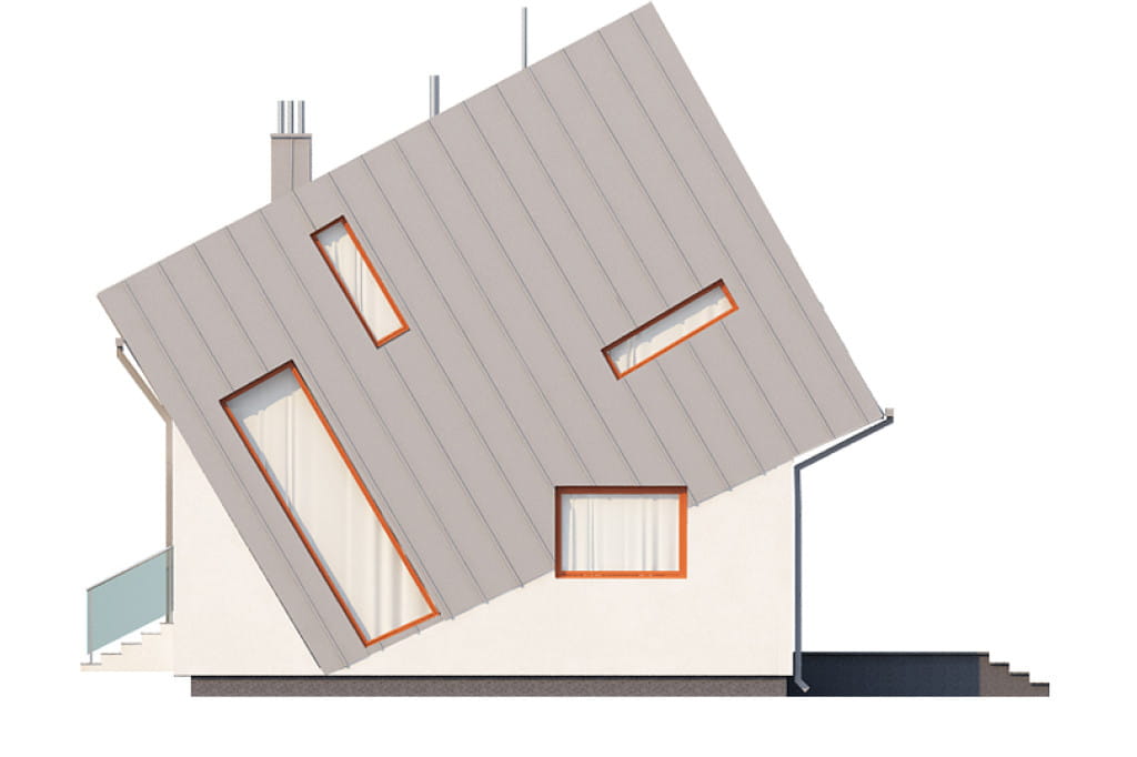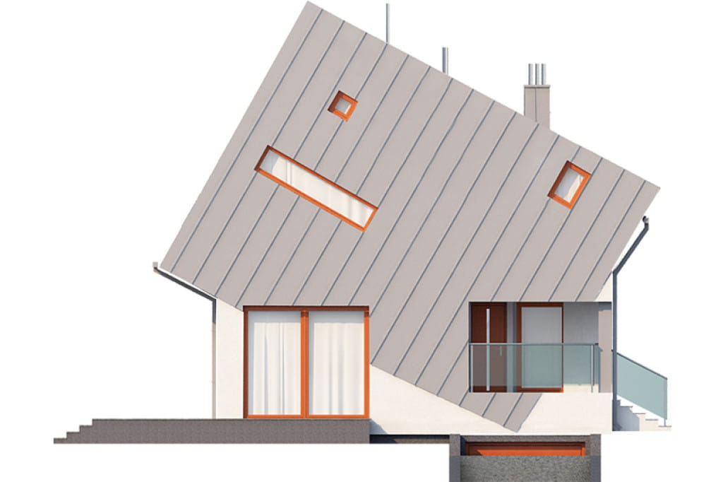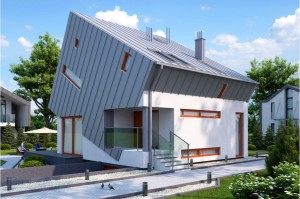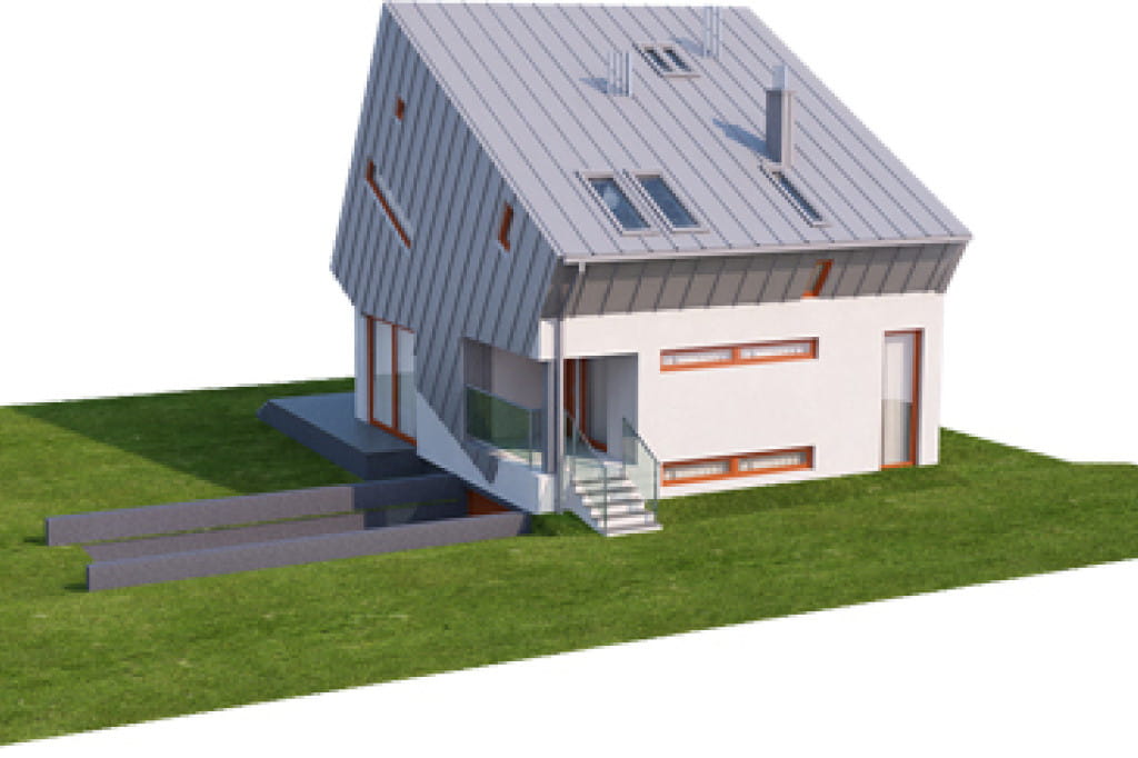Niezwykle prezentuje się bryła budynku, która sprawia wrażenie jakby składała się z dwóch nałożonych na siebie sześcianów. Osiągnięcie tego rezultatu wymagało od nas zastosowania technologi stalowej. Projekt ma dużą powierzchnię dachu, w którym liczne przeszklenia zapewniają optymalny dopływ światła do wnętrza domu.
