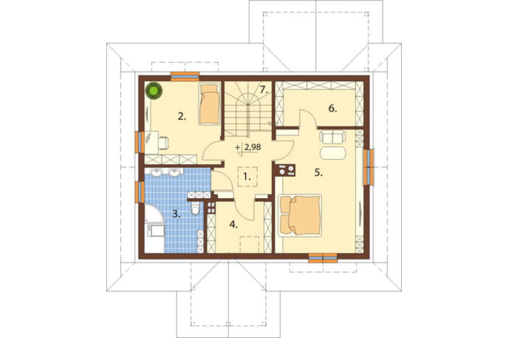 Storczynek to projekt domu, który spodoba się każdemu, kto ceni sobie stonowaną, tradycyjną architekturę i pragnie wybudować średniej wielkości dom jednorodzinny z poddaszem użytkowym. Program pomieszczeń jest praktyczny i dobrze przemyślany, co sprawi, że mieszkanie w domu wybudowanym na bazie Storczynka będzie przyjemnością. Z zewnątrz projekt wyróżnia się wysuniętym z elewacji frontowej gankiem i tradycyjną jaskółką na poddaszu.