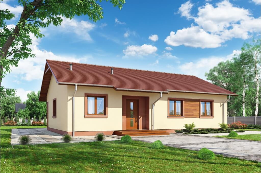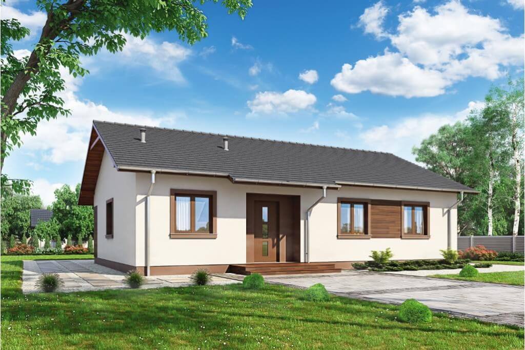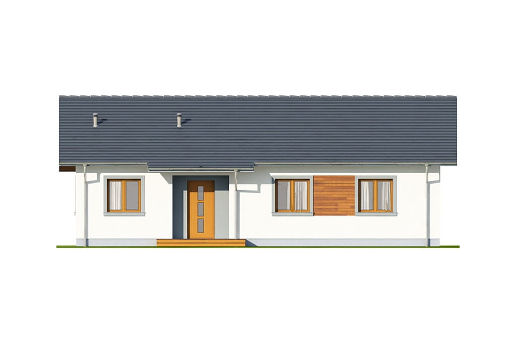 Projekt domu Celozja to niewielki dom parterowy przykryty dwuspadowym dachem. Prosta bryła pozwala na ekonomiczną budowę i niskie koszty przyszłego użytkowania. To również rozwiązanie dla osób ceniących symetrię i prostotę. Rzut budynku oparty został na planie prostokąta.