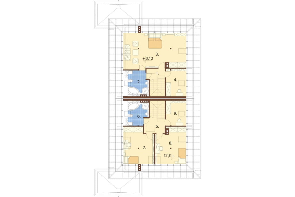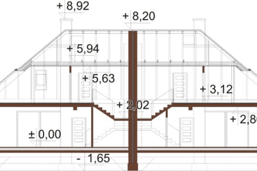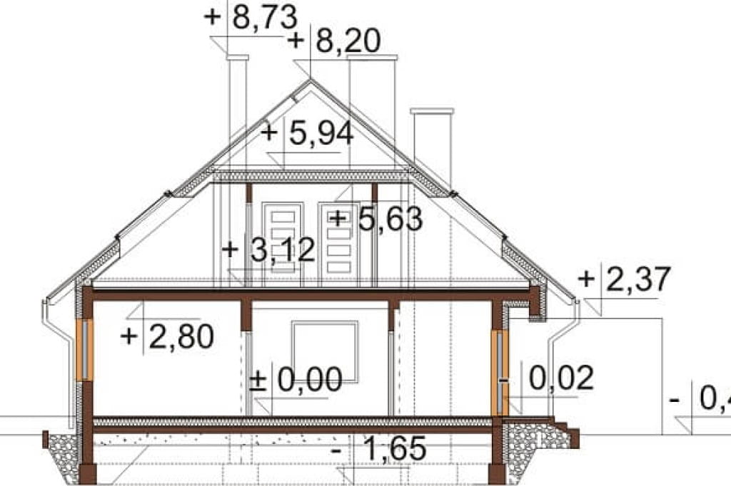 - Układ dachu kalenicowy