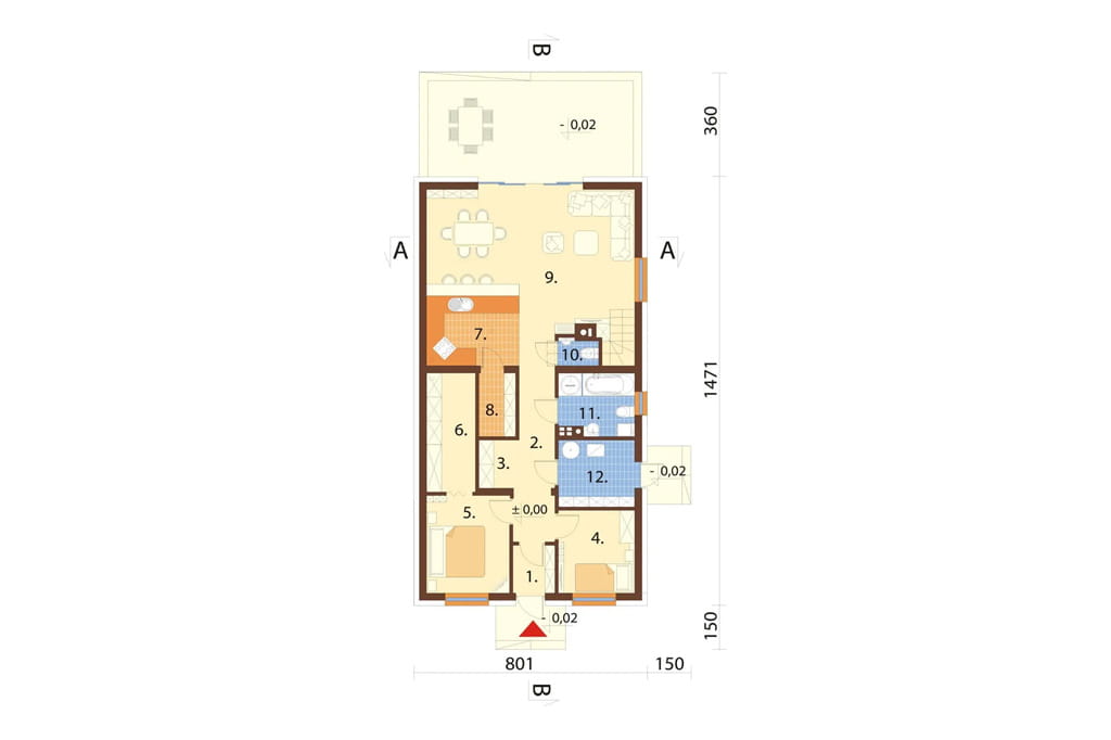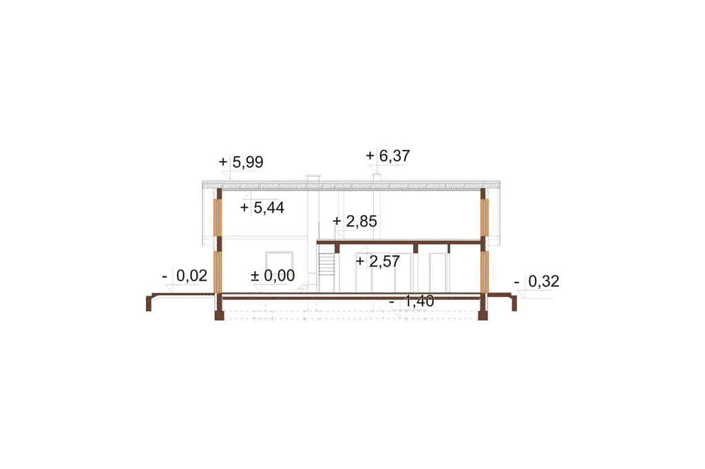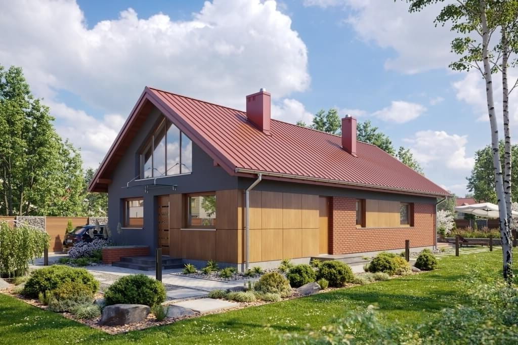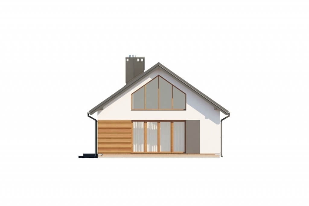 Złotlinek B2 to modyfikacja jednego z najpopularniejszych projektów w ofercie naszego biura architektonicznego. W stosunku do pierwowzoru, wersja B ma zmieniony program, oferując nieco więcej przestrzeni. Dodatkowo zmieniła się elewacja frontowa, w której główne wejście jest teraz usytuowane centralnie. Zwiększyliśmy także powierzchnię okien, dzięki czemu wnętrze jest lepiej doświetlone.