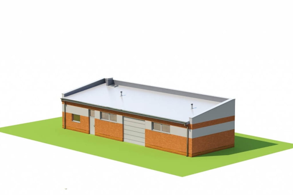 Projektowany budynek ZG-98 to obiekt pełniący funkcję magazynowo - gospodarczą. Podstawowa bryła budynku przykryta jest dachem jednospadowy o nachyleniu połaci 10 stopni. Budynek nie jest podpiwniczony i posiada jedną kondygnację nadziemną. Budynek ogrzewany jest przez kocioł gazowy. Bryła posiada wentylację grawitacyjną.