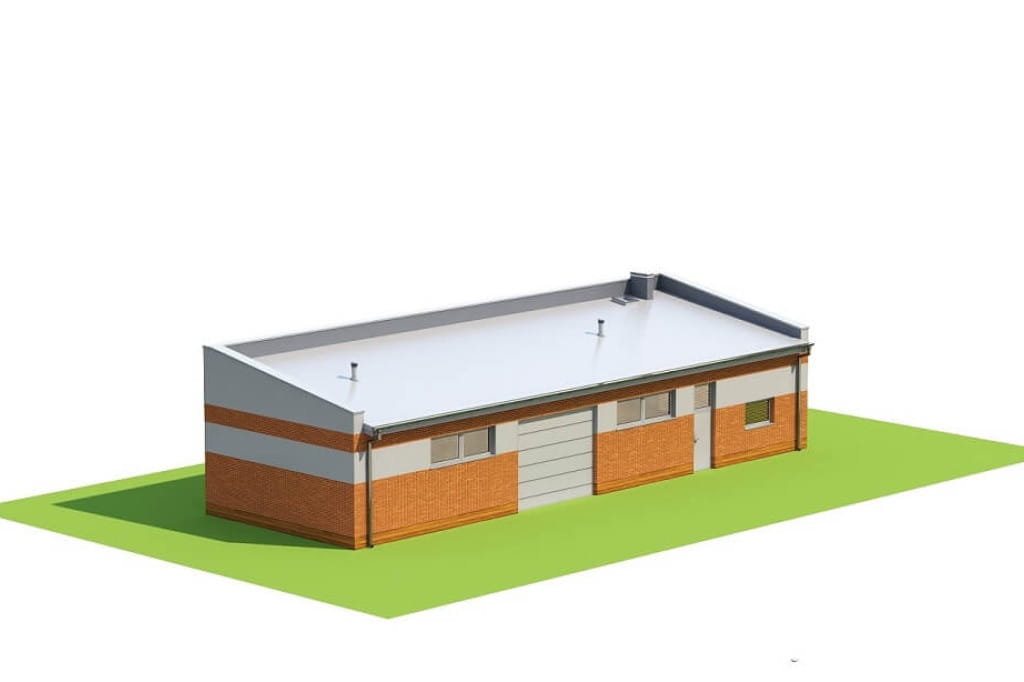 Projekt LZG-98 BUDYNKU MAGAZYNOWO - GOSPODARCZEGO. Projektowany budynek może pełnić zarówno funkcję magazynową jak i gospodarczą.