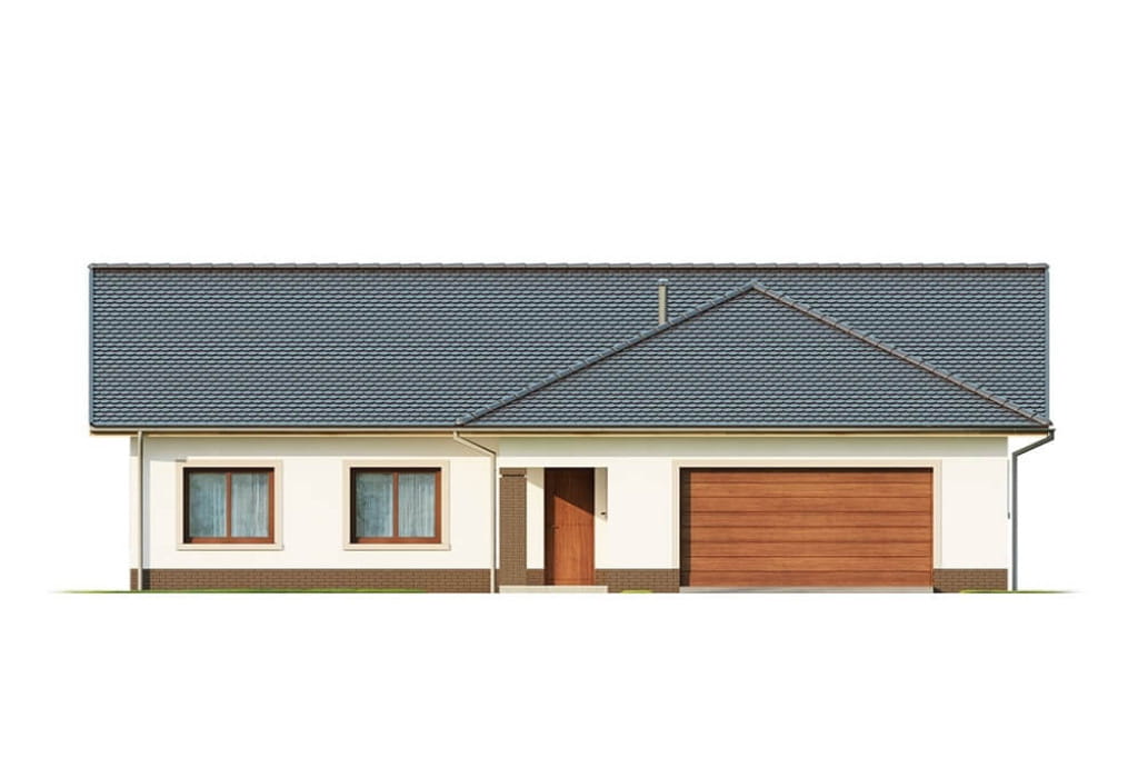 Miluszyk to projekt domu parterowego z garażem dwustanowiskowym, który oferuje dużą powierzchnię użytkową i stonowaną architekturę podobną do tej jaką widzimy na amerykańskich przedmieściach. Projekt ze względu na gabaryty bryły wymaga dużej działki, jego program jest odpowiednie dla małej 3-4 osobowej rodziny, która chce żyć w bardzo komfortowych warunkach.