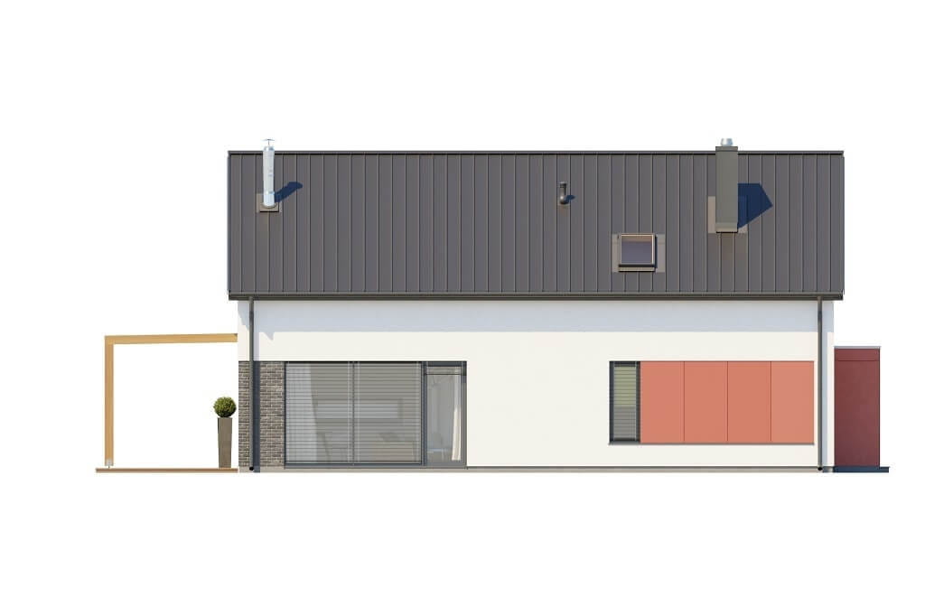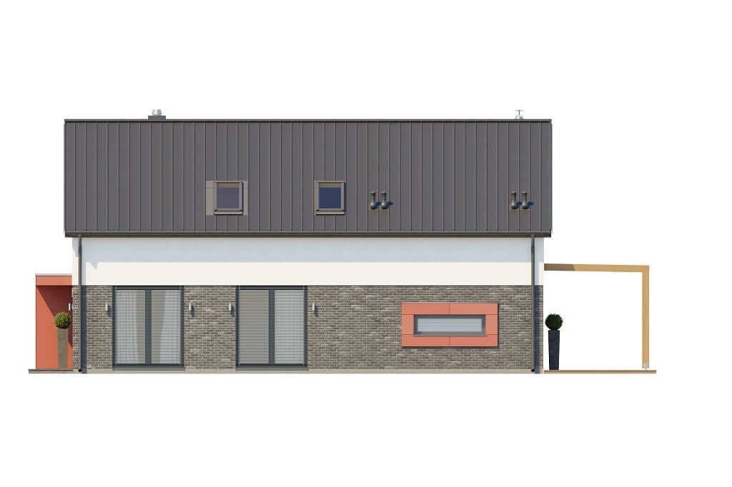 Projekt ma modą wśród inwestorów, minimalistyczną bryłę z prostymi elewacjami, w których jest duża ilość przeszkleń zapewniających doskonałe doświetlenie strefy dziennej na parterze. Dwuspadowy dach daje możliwość zainstalowania w przyszłości paneli solarnych, które mogą wspomóc ogrzewanie C.W.U. Ośnieża 2 jest projektem, który można posadowić na stosunkowo wąskiej działce, do realizacji domu potrzebna będzie parcela o szerokości min. 16 metrów.