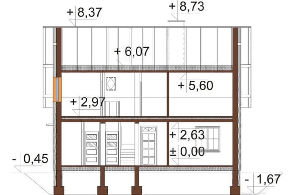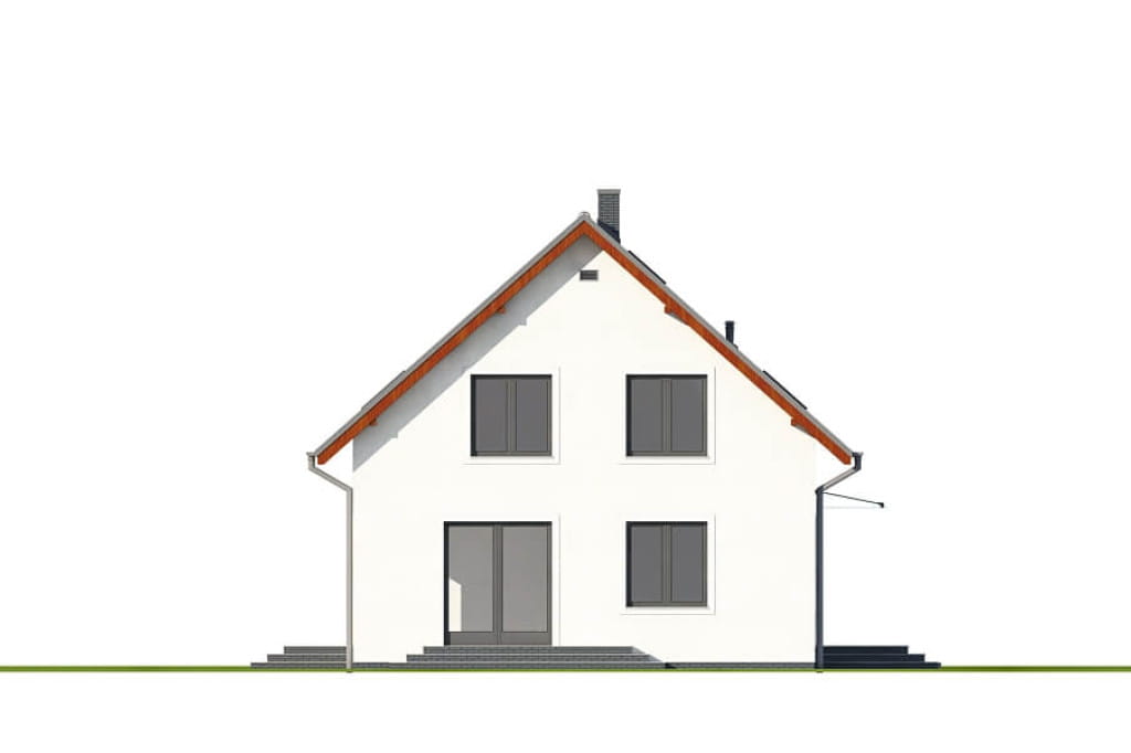Projekt DM-6653 można realizować na parcelach o szerokości min. 17 m. Bryła domu rozrysowana jest na planie prostokąta i kryta dwuspadowym dachem o kącie nachylenia równym 42 stopnie. Kalenica poprowadzona jest równolegle do drogi.