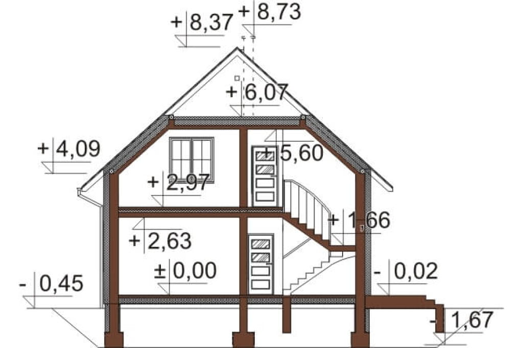 Materiały ścian zewnętrznych: pustak ceramiczny 30 cm, styropian 20 cm, tynk zewnętrzny.