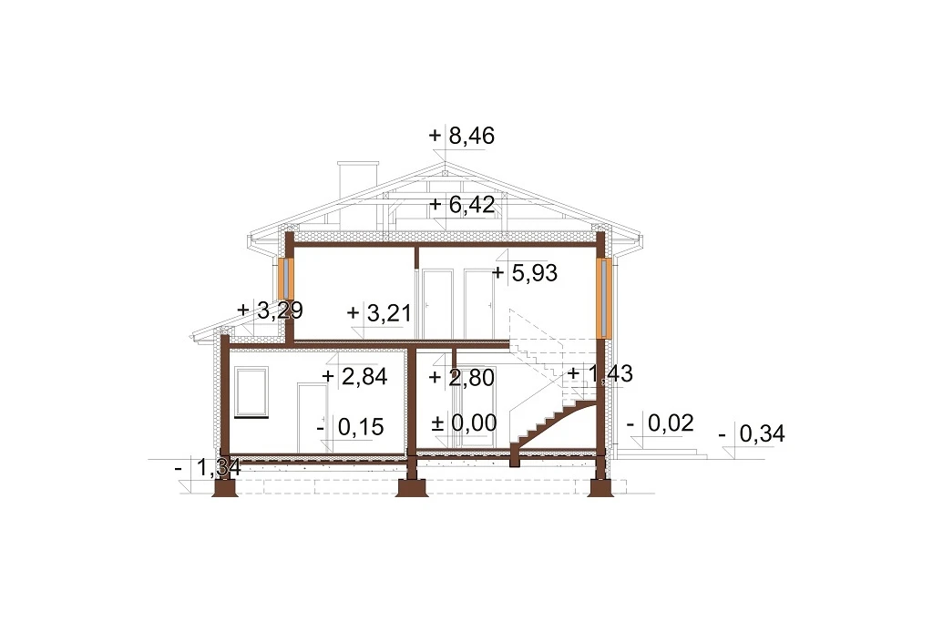 Ściany zewnętrzne: pustak ceramiczny 25cm, styropian 20cm, tynk zewnętrzny.