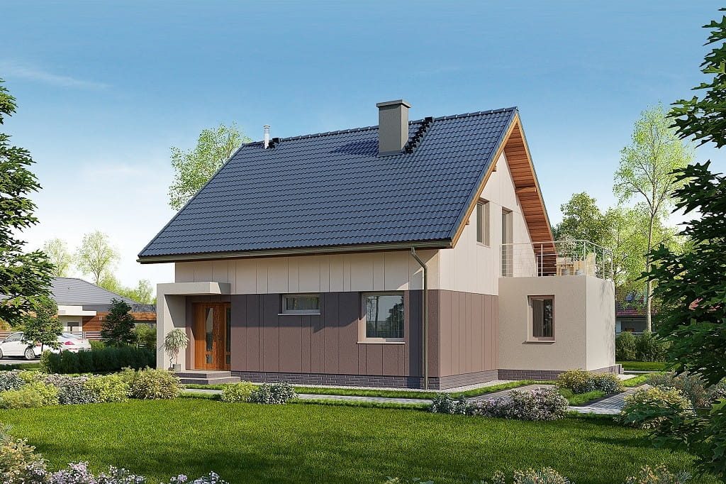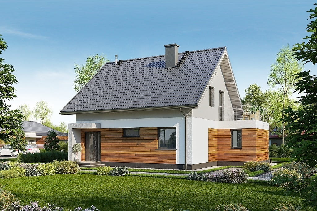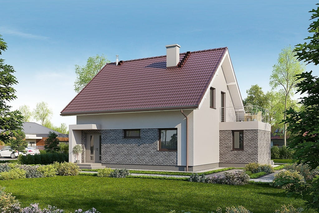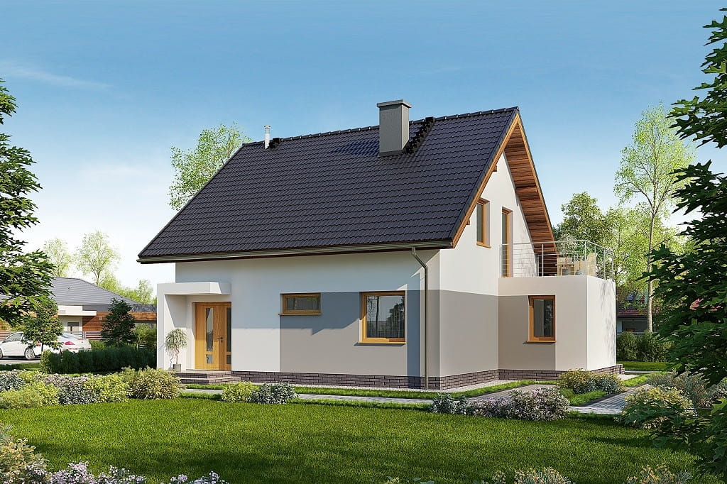 Projekt domu parterowego z poddaszem użytkowym, jednorodzinnego, tradycyjnego, bez garażu, z dachem dwuspadowym, z kątem nachylenia do 45°, technologia murowana lub szkieletowa, bez kominka, energooszczędnego, do 120 m2, koszt budowy do 250 tys. zł