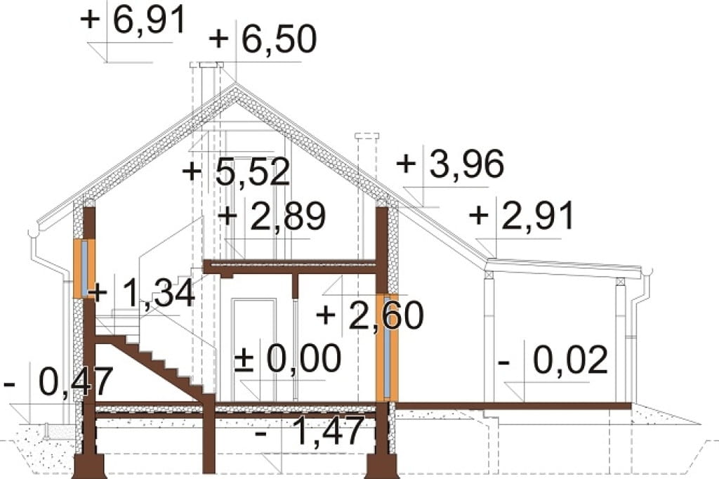 Budynek parterowy z poddaszem użytkowym, niepodpiwniczony i bez garażu.