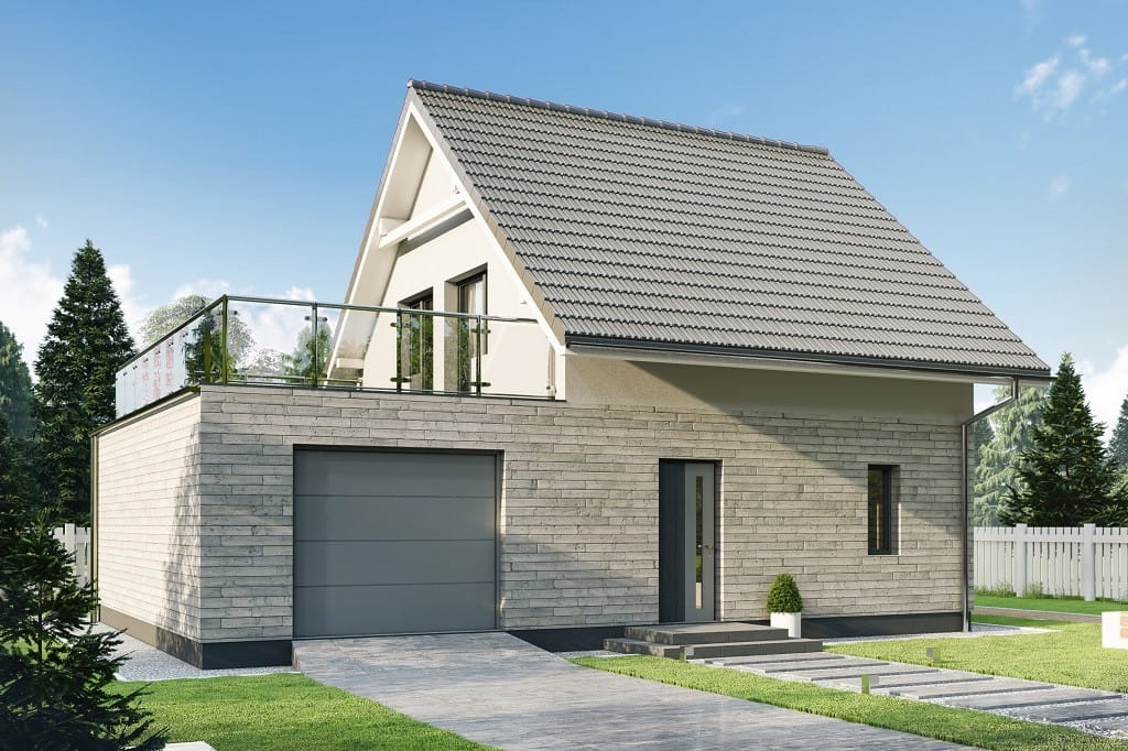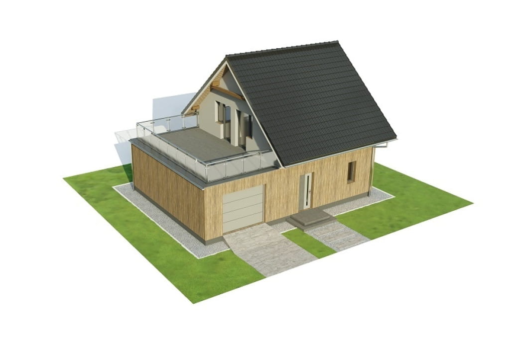 Projekt domu L-6739 KASSANIA 2 jest parterowym budynkiem z poddaszem użytkowym, z garażem jednostanowiskowym i bez piwnicy. W obiekcie zaprojektowano na dachu garażu duży taras. Ogrzewany jest za pomocą elektrycznych mat grzewczych. Przykryty jest dachem dwuspadowym o kącie nachylenia połaci 40 stopni. Idealnie sprawdzi się dla 3 - 5 osób.