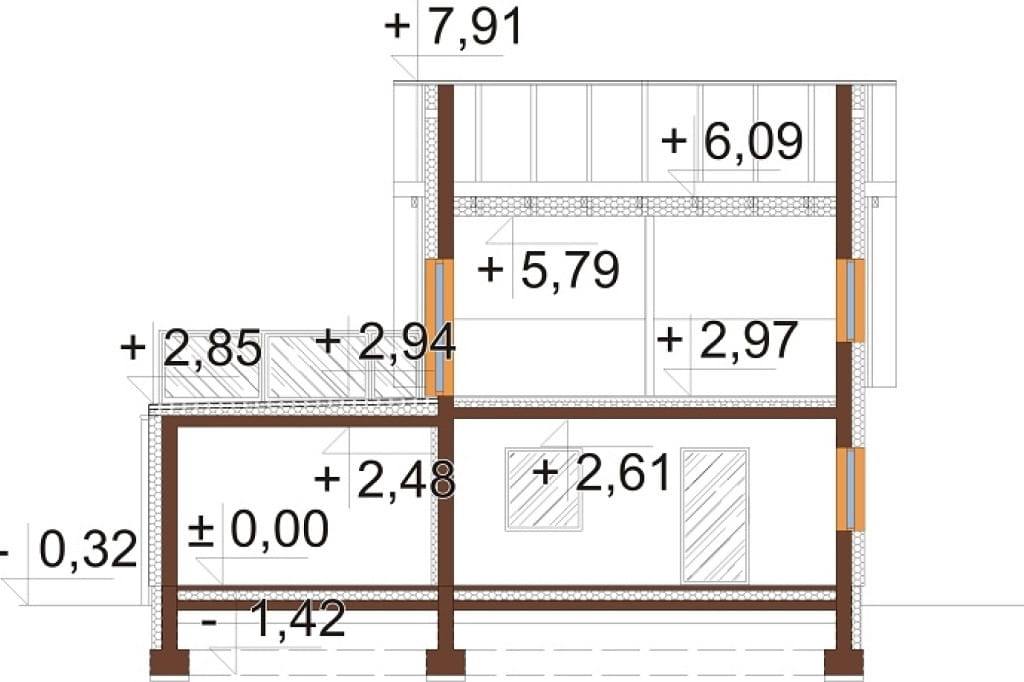 - Układ dachu kalenicowy