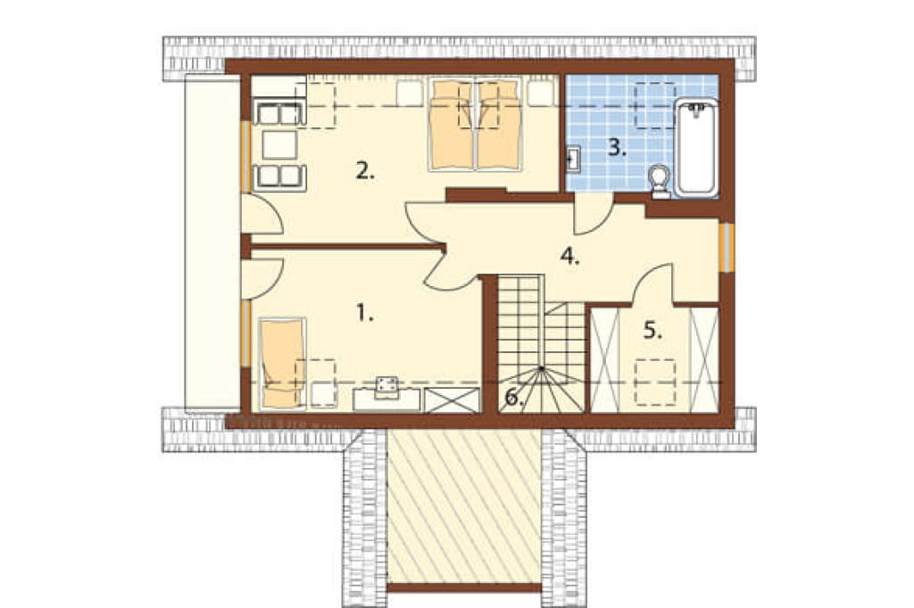 W zaciszu poddasza znajdują się dwie klimatyczne sypialnie, każda z nich wyposażona została w dostęp do balkonu i doświetlona co najmniej jednym oknem połaciowym. Dla wygody domowników, umieszczono tu również drugą łazienkę oraz dostępną z hallu garderobę.