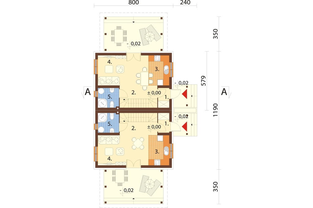 Lokal mieszkalny I - A: wiatrołap, hol, kuchnia, salon z jadalnią, łazienka, hol, garderoba, 2 pokoje, łazienka, schody