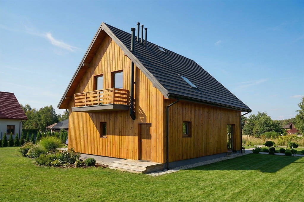 Powierzchnia użytkowa: 137,86 m2. Budynek jednorodzinny parterowy z poddaszem użytkowym, niepodpiwniczony, bez garażu. Zaprojektowany w technologii drewnianej szkieletowej z dachem dwuspadowym. Dom przeznaczony dla 4-5 osób.