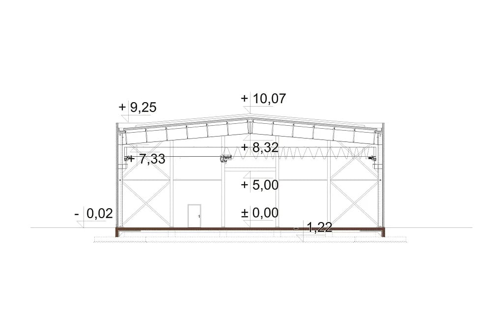 Część produkcyjna: płyta warstwowa z rdzeniem poliuretanowym 14 cm, konstrukcja stalowa