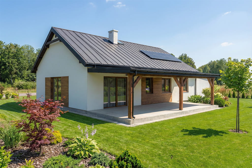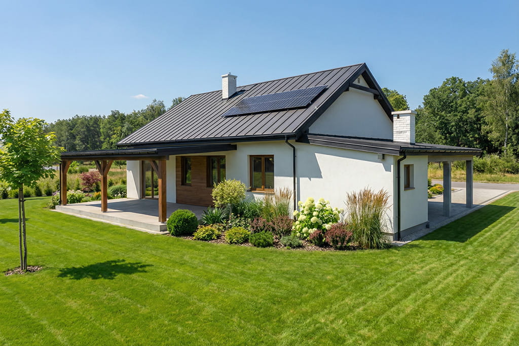 Ogrzewanie: kocioł gazowy, pompa ciepła powietrze–woda do c.w.u., instalacja fotowoltaiczna