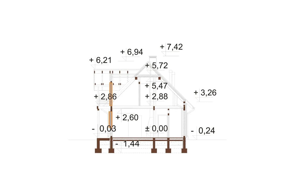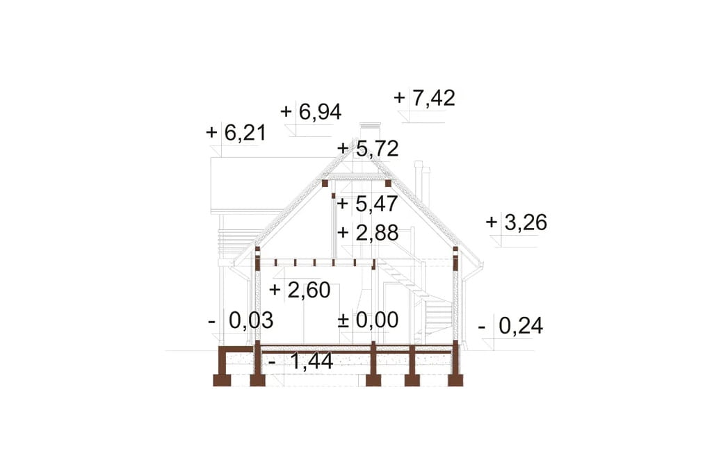 Powierzchnia użytkowa: 72,24 m2. Dom parterowy z poddaszem mieszkalnym, bez podpiwniczenia.