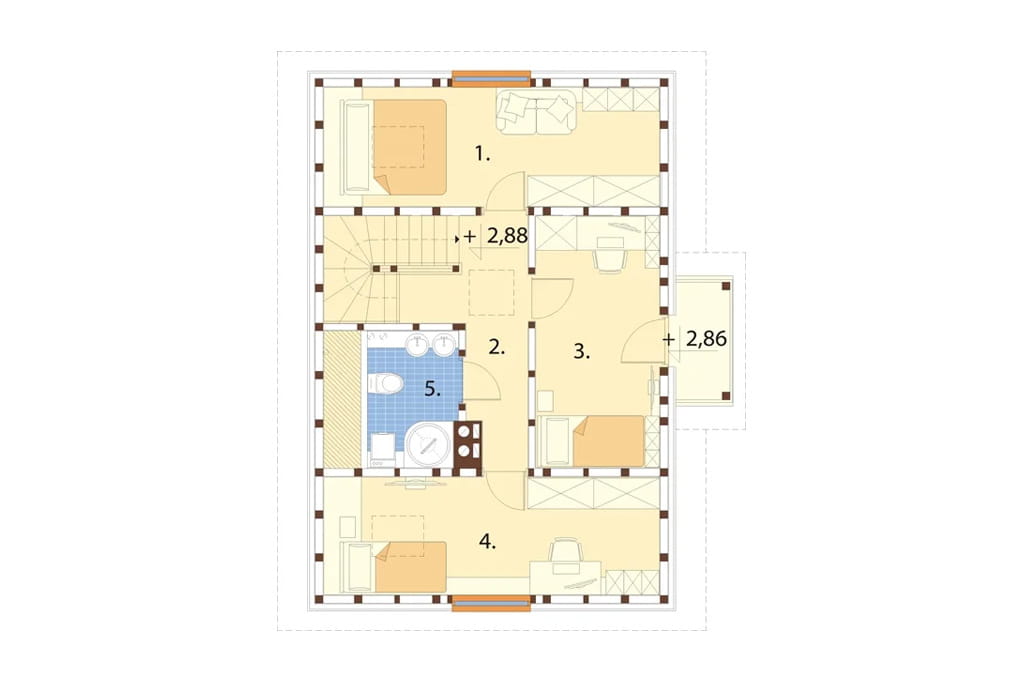 Program poddasza składa się z trzech klimatycznych sypialni, jedna z nich wyposażona została w uroczy, zadaszony balkon. Z pokojami sąsiaduje wygodna łazienka.