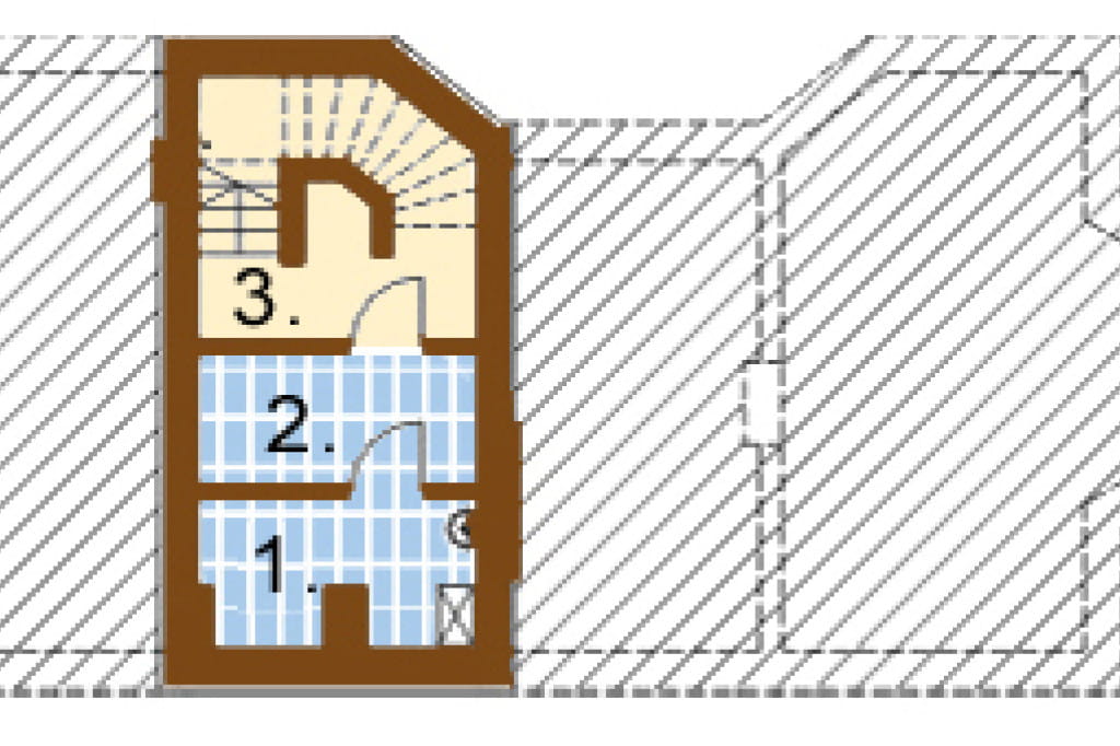Stropy w budynku: żelbetowe. Kąt nachylenia dachu: 48°.
