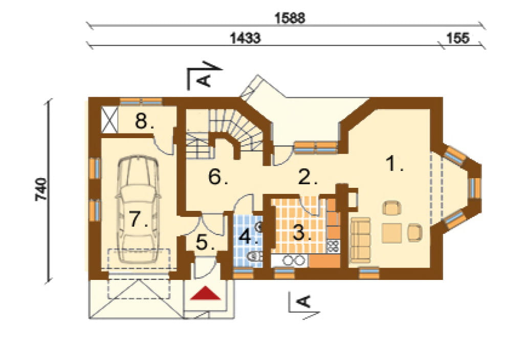 Program: 3 pokoje, salon, kuchnia, jadalnia, pralnia, kotłownia, 2 pomieszczenia gospodarcze oraz garaż.