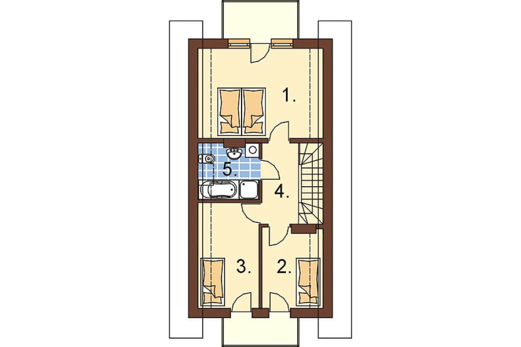 W celu zapewnienia domownikom maksimum komfortu, projektanci zadbali o obecność drugiej łazienki na poddaszu. Każdy z trzech wygodnych pokoi posiada dostęp do balkonu.