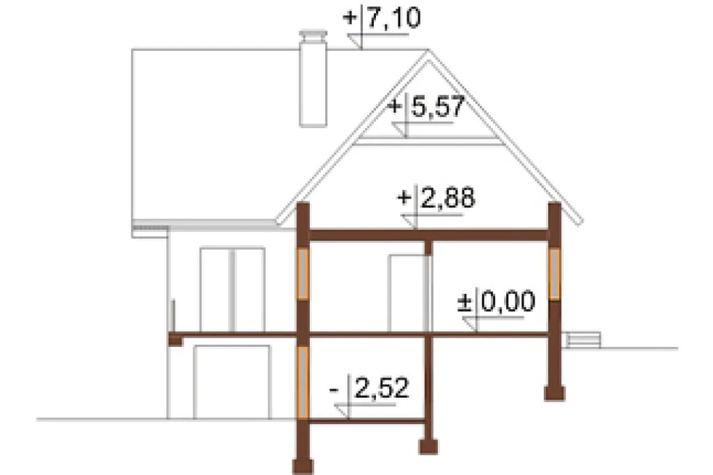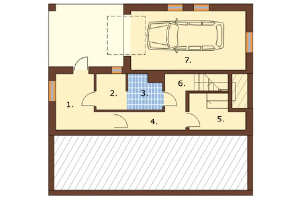 Częściowe podpiwniczenie gwarantuje odpowiednią przestrzeń dla pomieszczeń gospodarczych. Znajduje się tu kotłownia ze składem opału oraz dwie piwnice. Wszystkie pomieszczenia połączone są wygodnymi przejściami. Zaplanowanie na tej kondygnacji garażu pozwala na oszczędność przestrzeni użytkowej domu i ogrodu.