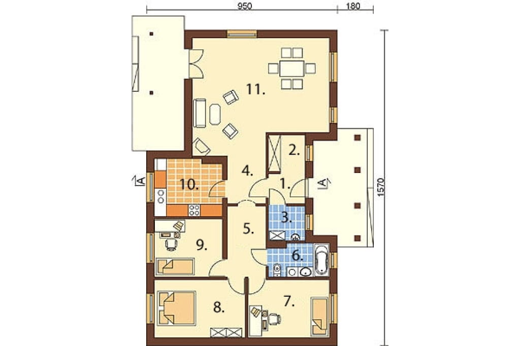 Program: 3 pokoje, salon, kuchnia, garderoba oraz kotłownia.