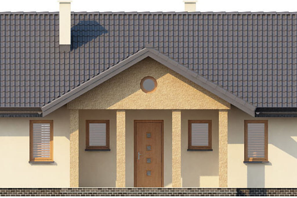 "Wiśnicz" to propozycja budynku jednorodzinnego, nawiązującego stylem do dworu szlacheckiego. Projekt zachwyca harmonijną i zrównoważoną kompozycją oraz spokojną elewacją, na której froncie dominuje kolumnowy portyk zwieńczony tympanonem. Takie rozwiązanie posiada nie tylko estetyczne funkcje - powstałe zadaszenie chroni otwarty ganek przed wiatrem i deszczem. Z tradycyjną zabudową wejścia pięknie komponują się duże, symetrycznie rozłożone okna.