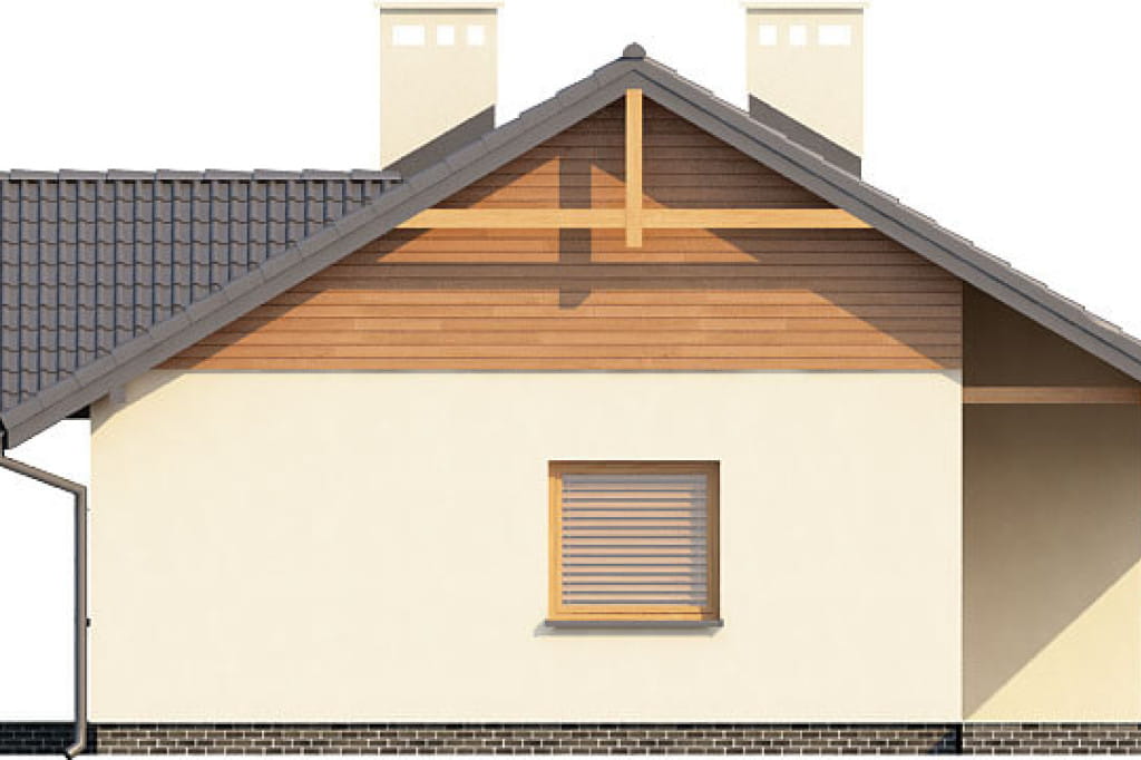 Skromna elewacja pozwala wyeksponować interesujące detale architektoniczne budynku - wspomniane już cechy dworu polskiego, uroczy, dwuspadowy dach oraz drewniane elementy więźby dachowej, pięknie komponujące się z drewnianymi oknami. Obecność tarasu pozwala na poczucie bliskości natury nawet na niezbyt dużej działce.