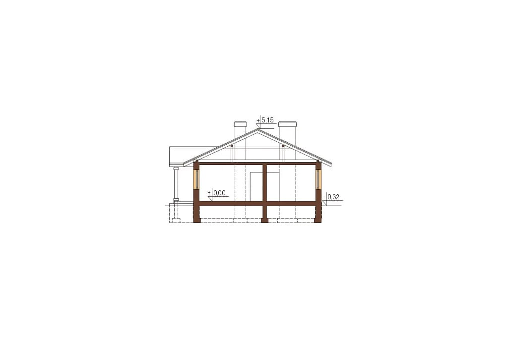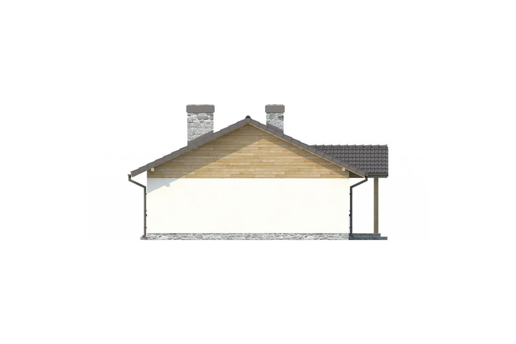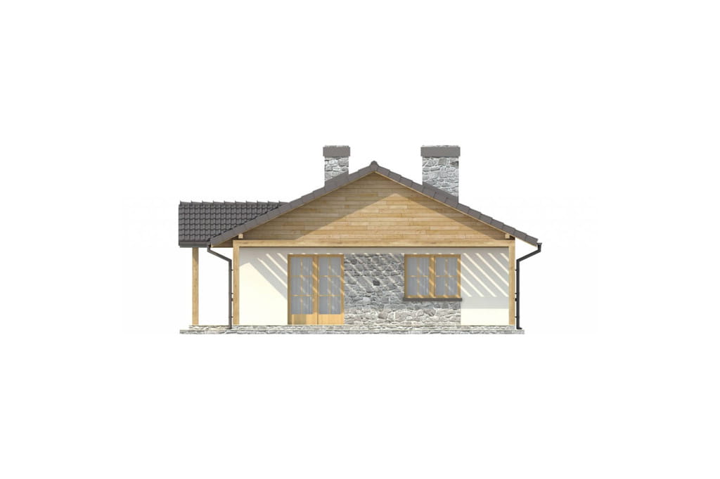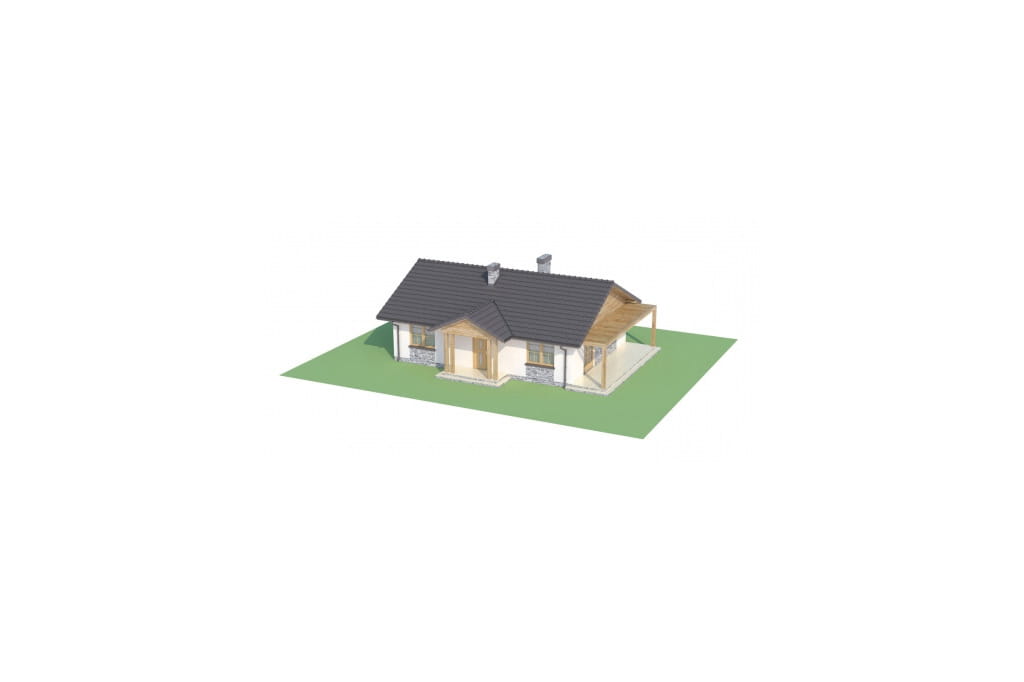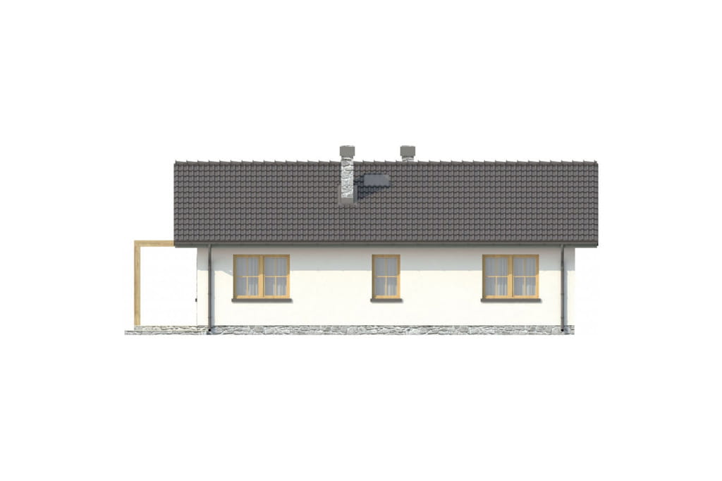 Projekt niedużego, parterowego domu utrzymany jest w stylistyce dworku polskiego. Szlachecki charakter podkreśla zgrabna, symetryczna bryła oraz prosta, skromna elewacja. Ozdobiona jest ona jedynie klasycznym tympanonem na froncie, który z obu stron wsparty jest podwójnymi kolumnami, tworząc wygodny i praktyczny daszek nad wejściem.