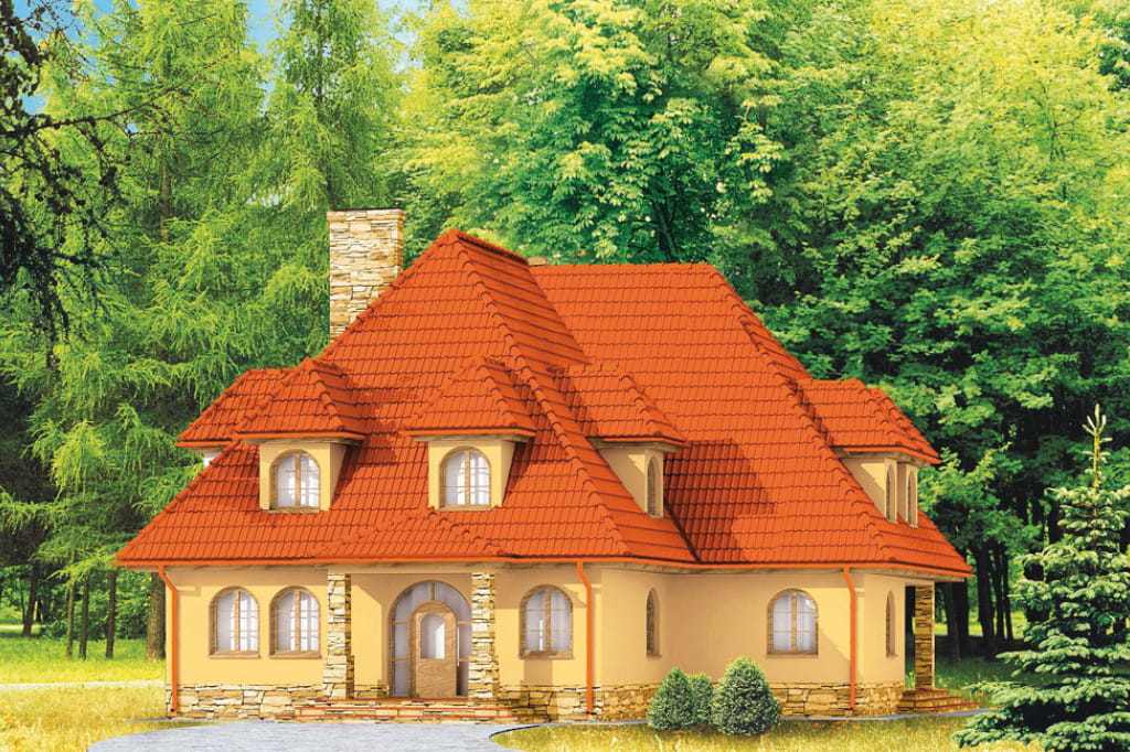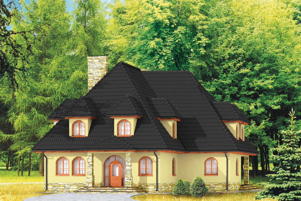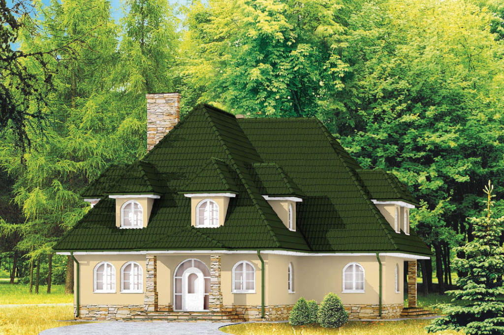 Projekt domu PODBORZE 2 (L-6316). Dom parterowy z poddaszem mieszkalnym, bez podpiwniczenia.