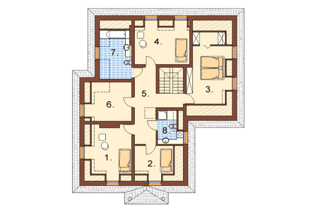 Dom parterowy z poddaszem mieszkalnym, bez podpiwniczenia.