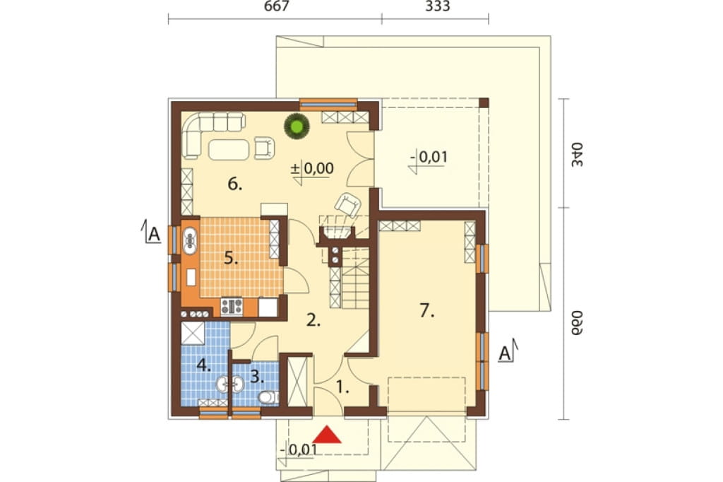 Program: 3 pokoje, salon, kuchnia, łazienka, WC, kotłownia i pom. gosp..