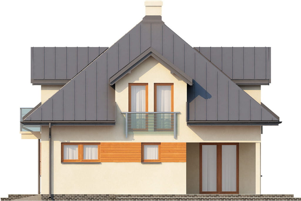 Dom jednorodzinny, parterowy z poddaszem mieszkalnym, bez podpiwniczenia.