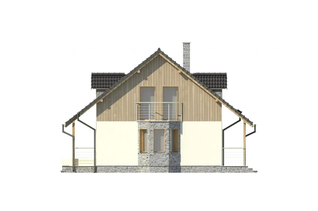 Stosunkowo prosta bryła tworzy spójną kompozycję, dzięki niezwykłej subtelności zastosowanych detali i kolorystyce. Kształt prostokąta został przełamany poprzez dwa, delikatnie wysunięte wykusze. Lukarny wpuszczają do budynku mnóstwo światła dziennego i stanowią element urozmaicający wygląd całego obiektu. Dzięki niewielkiej kubaturze oraz zastosowaniu dużych przeszkleń wnętrza będą jasne i słoneczne. Osobne wejścia do budynku oraz tarasy od strony ogrodowej zostały dodatkowo zadaszone poprzez wysuniętą połać dachu.