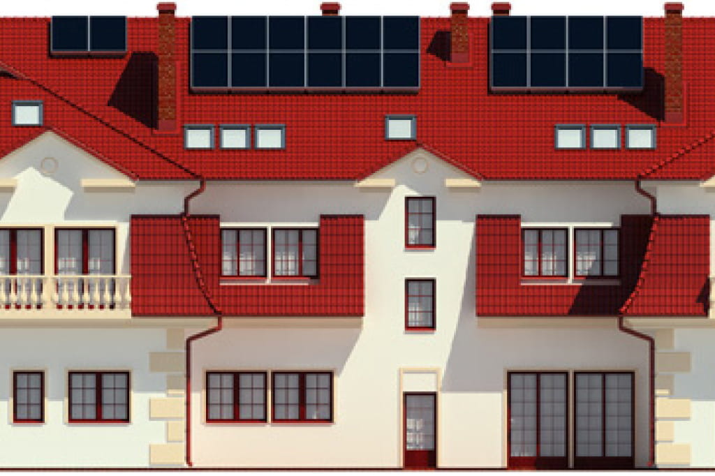 Podgrzewanie ciepłej wody użytkowej wspomagane jest przez instalację solarną złożoną z 32 kolektorów słonecznych umieszczonych na dachu budynku.