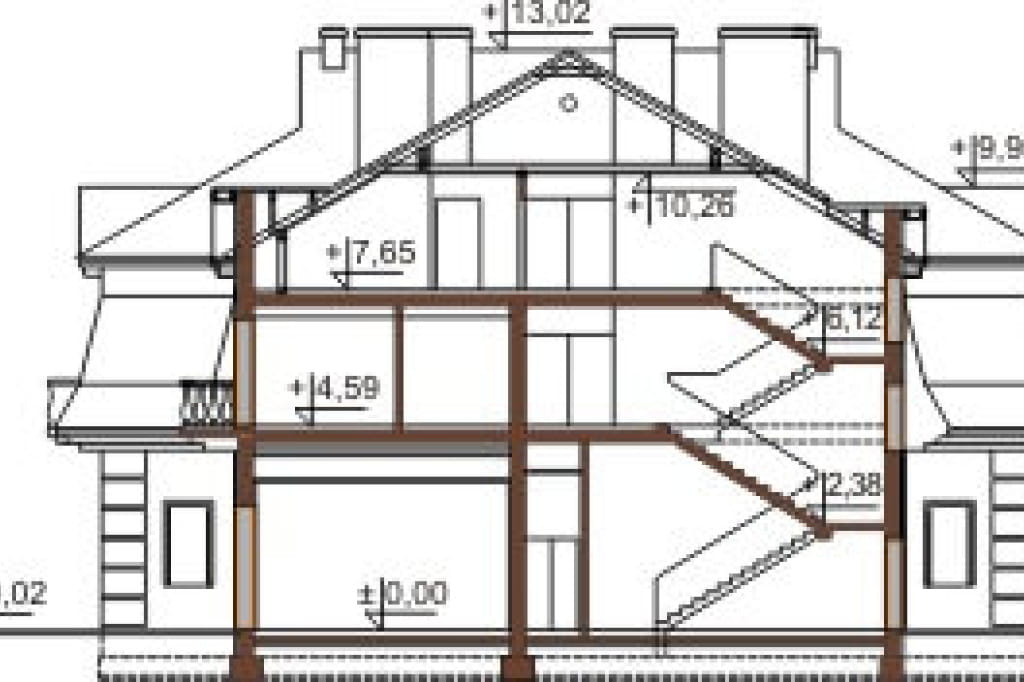 Bryła budynku jest dość zwarta i wydłużona. Urozmaicenia formy stanowią symetrycznie zaplanowane wysunięcia. Elementem wyróżniającym się jest niepowtarzalna połać dachowa zdecydowanie wybijająca się i stanowiąca ozdobę całej formy. Świetliki w połaci dachu rozświetlają pokoje zaprojektowane na poddaszu, a duże okna w elewacjach wnętrza na parterze i piętrze. Tradycyjny styl podkreślają kolumienki oraz tralki balkonowe. Obiekt należy do bardzo reprezentacyjnych i z pewnością wywrze wrażenie na każdym gościu.