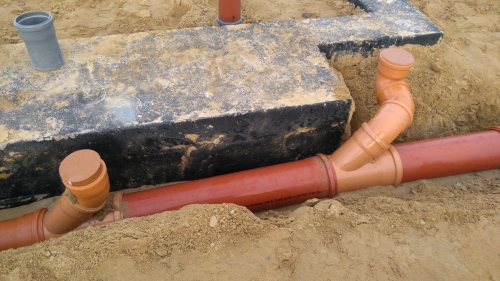 Panowie szybko się z tym uporali, szkoda tylko, że wszystko było źle (kąt prosty plus zamocowana pęknięta rura) i efekt był taki że 2 dni spędziliśmy układając rury (najpierw je rozłączając).